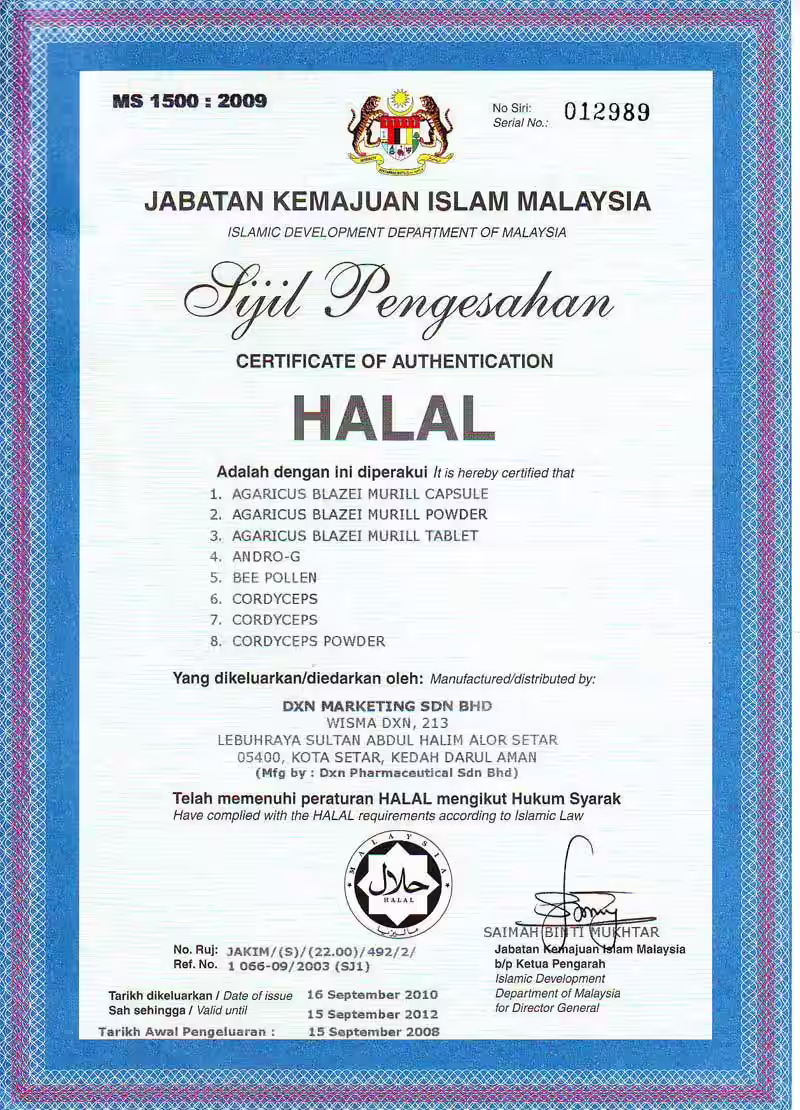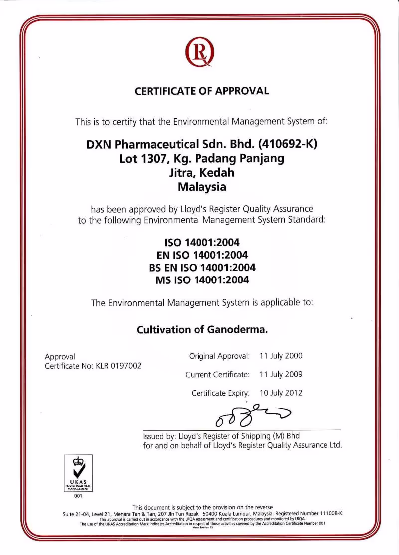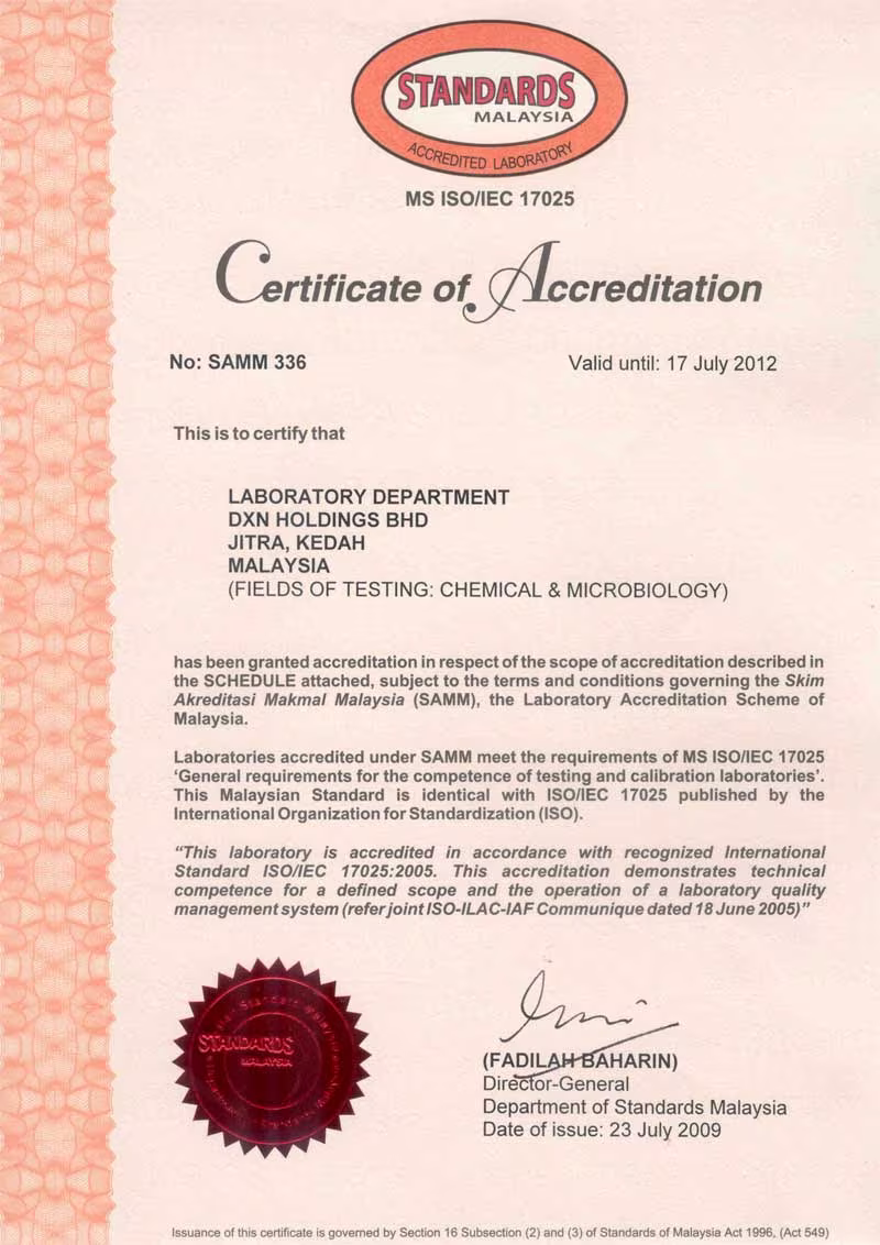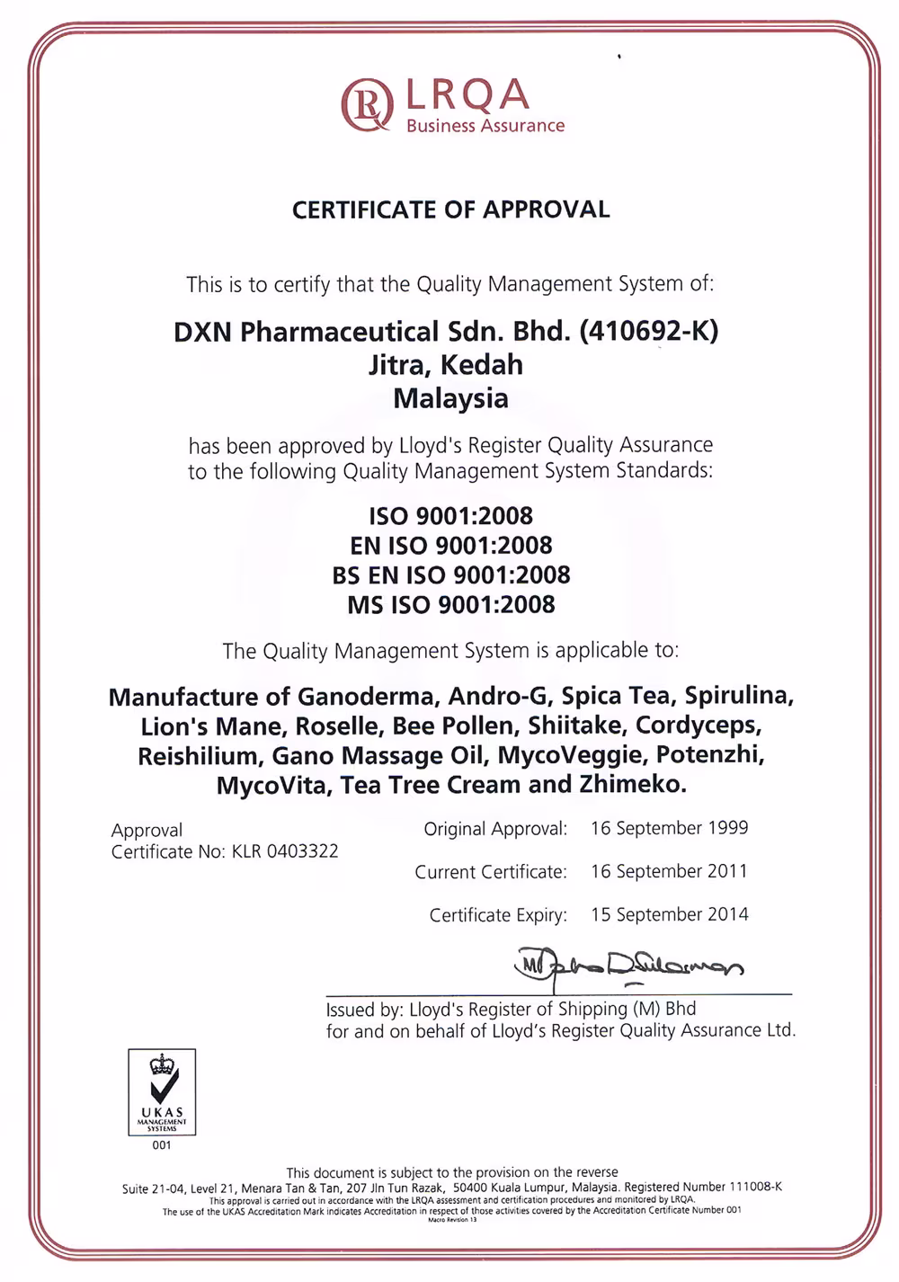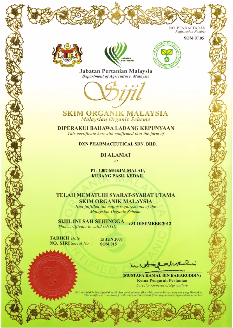 DXN Industries (M) Sdn Bhd获得了马来西亚卫生部颁发的HACCP证书,以表彰其在应用HACCP(危害分析和关键控制点)系统方面的合规性。
